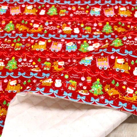 クリスマス キルティング生地 プレゼント サンタ くま 濃い赤色 Q-W