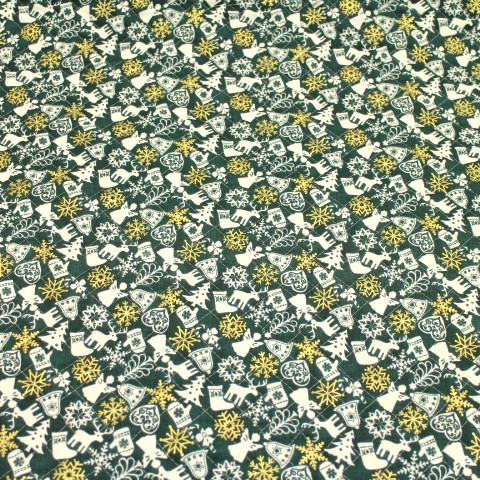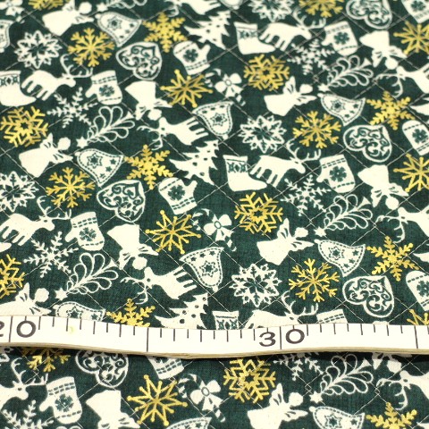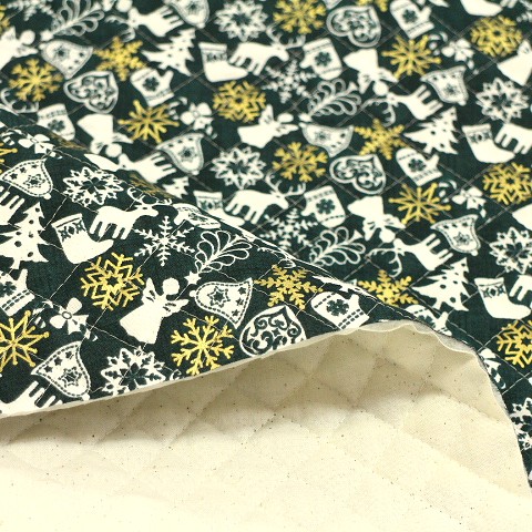 クリスマス柄 キルティング生地 サンタ プレゼント 雪だるま 濃い緑色 Q-I