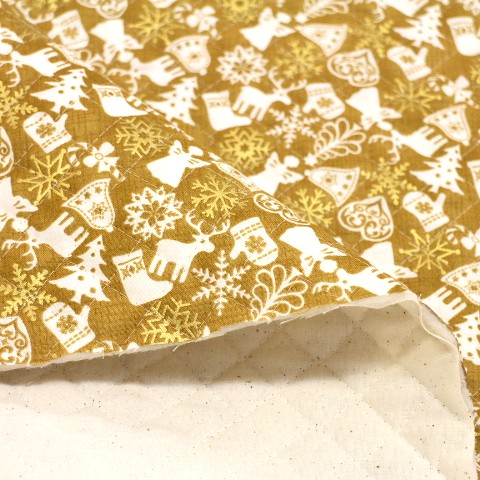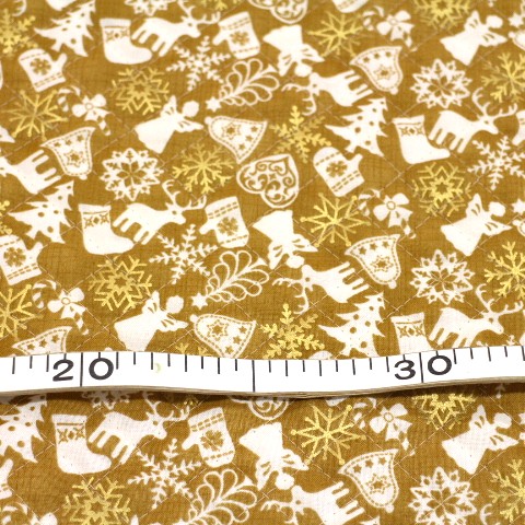 キルティング クリスマス キルティング生地 クリスマスキルト シンプル 雪の結晶 ラメ ゴールド グレーがかったからし色 Q-F 素材 (表、裏布)綿100% (中綿)ポリエステル100% 布幅 105㎝幅 小物などクリスマスグッズに適しています。 ながぐつの型紙つき。 50㎝までは小口便可です。 表示価格は10㎝です。 生地やひもテープなどはすべて10㎝から10㎝単位でお切りします。 10㎝は数量「1」と入力、1mは数量「10」と入力してください。