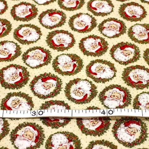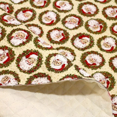 キルティング クリスマス キルティング生地 クリスマスキルト サンタ フェイス リース 薄いクリーム色 Q-H 素材 (表、裏布)綿100% (中綿)ポリエステル100% 布幅 105㎝幅 小物などクリスマスグッズに適しています。 ながぐつの型紙つき。 50㎝までは小口便可です。 表示価格は10㎝です。 生地やひもテープなどはすべて10㎝から10㎝単位でお切りします。 10㎝は数量「1」と入力、1mは数量「10」と入力してください。