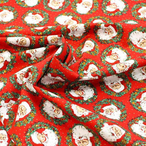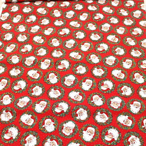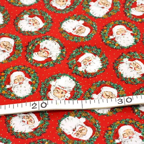 クリスマス生地 サンタ リアルなサンタ リース ゴールド 赤色 ku-c-AK シーチング生地 綿100% 110㎝幅 クリスマスの小物に使えます。 ランチョンマットやテーブルクロスに使うだけで、クリスマス感、満載です。 小物やスカートなどクリスマスグッズに適しています。 2mまでは小口便可です。 表示価格は10㎝です。 生地やひもテープなどはすべて10㎝から10㎝単位でお切りします。 10㎝は数量「1」と入力、1mは数量「10」と入力してください。