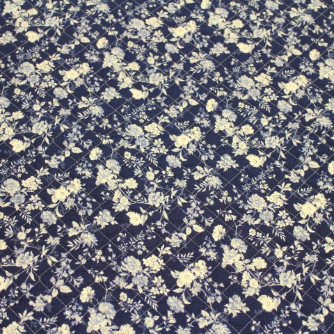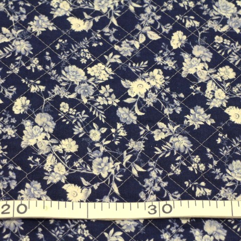 キルティング生地 花 フラワー 紺色 ナス紺色Q-286 シーチング生地のキルティング生地になります 大人っぽい花柄です。 シンプルな色目の花柄です。 レッスンバッグ、トートバッグ、座布団、椅子カバーなど。 ベットカバーにもオシャレです(^ ^) 素材 (表、裏布)綿100% (中綿)ポリエステル100% 布幅 105㎝幅 50㎝までは小口便可です。 全針キルトです。 柄が大きいので、カットの場所によって柄が多少変わります。 表示価格は10㎝です。 生地やひもテープなどはすべて10㎝から10㎝単位でお切りします。 10㎝は数量「1」と入力、1mは数量「10」と入力してください。