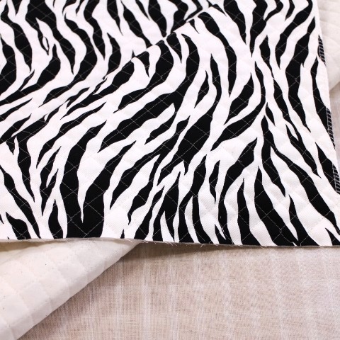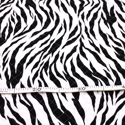 キルティング ゼブラ柄 ゼブラ かっこいい 白×黒 Q-342 キルティング生地になります。 かっこいいゼブラ柄のキルティング生地です。 高学年、ゼブラ柄が好きな子におススメの柄です。 レッスンバッグ、トートバッグ、ズック袋など。 入園入学にピッタリです(^ ^) 素材 (表、裏布)綿100% (中綿)ポリエステル100% 布幅 107㎝幅 50㎝までは小口便可です。 ツイル生地の全針キルトです。 表示価格は10㎝です。 生地やひもテープなどはすべて10㎝から10㎝単位でお切りします。 10㎝は数量「1」と入力、1mは数量「10」と入力してください。
