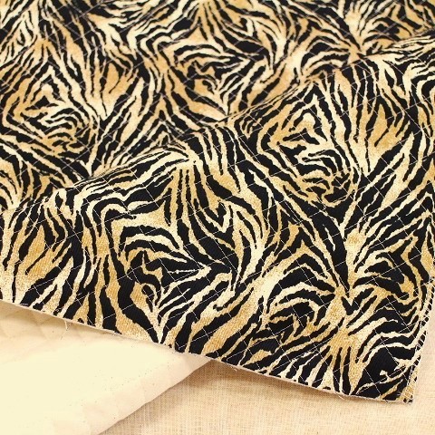 キルティング ゼブラ柄 ゼブラ かっこいい 金茶ぼかし×黒 Q-344 キルティング生地になります。 かっこいいゼブラ柄のキルティング生地です。 高学年、ゼブラ柄が好きな子におススメの柄です。 レッスンバッグ、トートバッグ、ズック袋など。 入園入学にピッタリです(^ ^) 素材 (表、裏布)綿100% (中綿)ポリエステル100% 布幅 107㎝幅 50㎝までは小口便可です。 ツイル生地の全針キルトです。 表示価格は10㎝です。 生地やひもテープなどはすべて10㎝から10㎝単位でお切りします。 10㎝は数量「1」と入力、1mは数量「10」と入力してください。