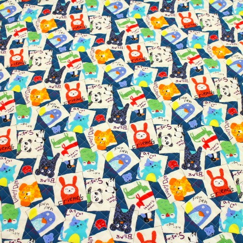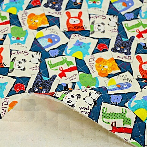 キルティング 動物 くま パンダ うさぎ フクロウ 緑がかった青色 Q-348 キルティング生地になります。 いろんな動物柄のキルティング生地です。 動物が好きな子におススメの柄です。 レッスンバッグ、トートバッグ、ズック袋、お布団袋など。 入園入学にもピッタリです(^ ^) 素材 (表、裏布)綿100% (中綿)ポリエステル100% 布サイズ 105㎝幅×50㎝ (全針キルト) 50㎝までは小口便可です。 表示価格は10㎝です。 生地やひもテープなどはすべて10㎝から10㎝単位でお切りします。 10㎝は数量「1」と入力、1mは数量「10」と入力してください。