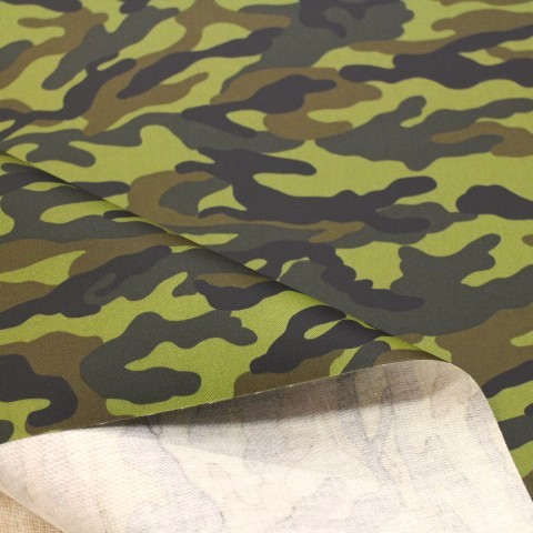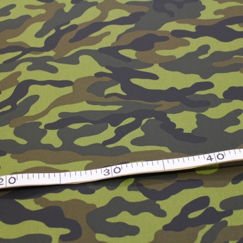 ラミネート生地 迷彩柄 黒、こげ茶、カーキー色 Rー345 つやなし 素材 綿100%のツイル生地にラミネート加工された布です。 つや消しラミネートです。 布サイズ 107㎝幅 雨や水を弾いてくれる布です。 カバンやランチョンマットなど小物作り使えます。 かっこいい迷彩柄です。 高学年の子におススメの柄です。 入園入学のカバンやリュックにピッタリです(^ ^) 柄が大きいので、カットの場所によって柄が多少変わります。 折りたたみ可の場合は、 50㎝までは小口便可です。 表示価格は10㎝です。 生地やひもテープなどはすべて10㎝から10㎝単位でお切りします。 10㎝は数量「1」と入力、1mは数量「10」と入力してください。
