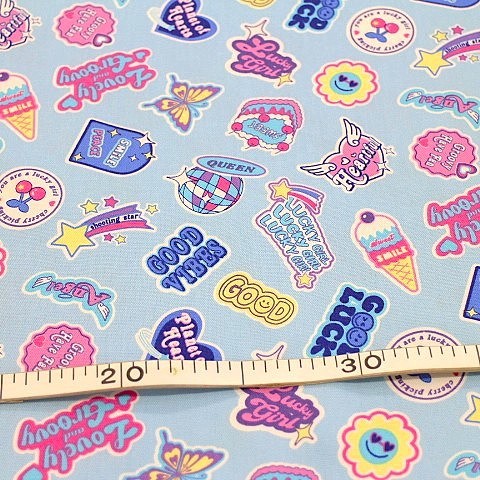 ステッカー 流れ星 アイス ケーキ ポップ スカイブルーc22-143 オックス生地 かっこかわいい柄が好きな子におすすめです。 コップ入れ、給食袋、エプロン、クッションなど。 入園入学にピッタリです(^ ^) 素材 綿100% 布幅 110㎝幅 2mまでは小口便可です。 カットする場所によって柄が変わります。 表示価格は10㎝です。 生地やひもテープなどはすべて10㎝から10㎝単位でお切りします。 10㎝は数量「1」と入力、1mは数量「10」と入力してください。